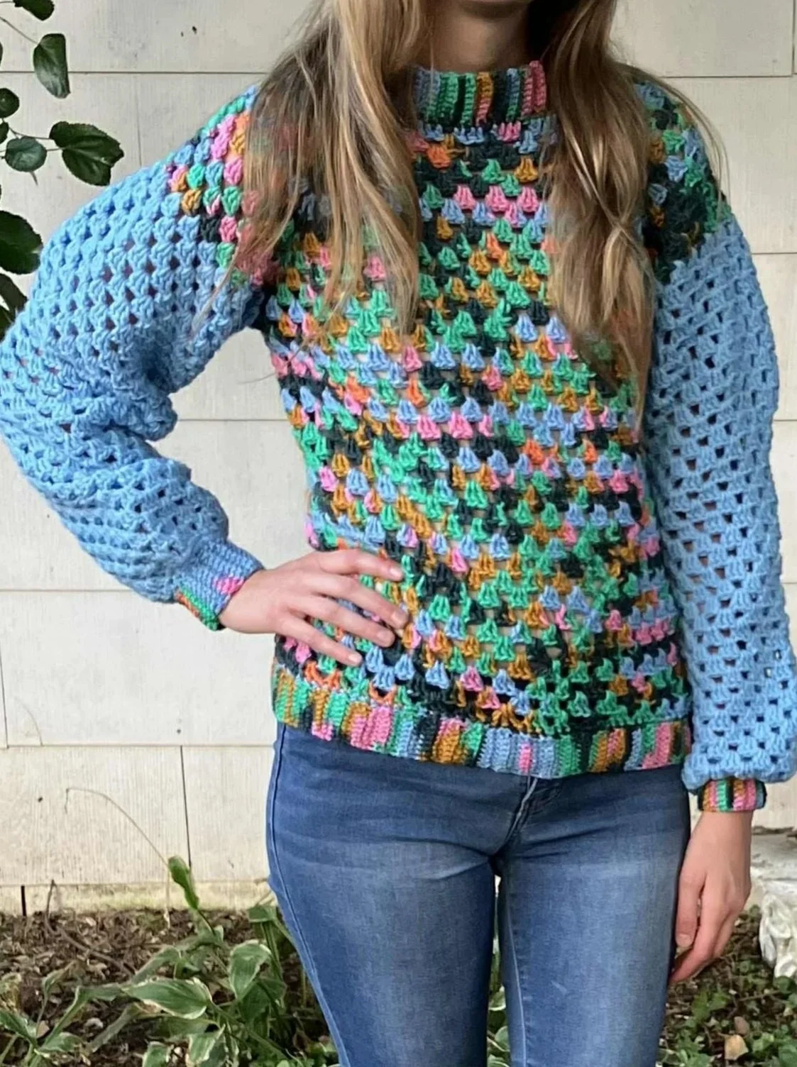Pattern: Granny Pop Pullover Pattern by MJ’s Off the Hook Design (included in class purchase)